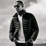 Luxurious looking light weight and fashionable down jacket with a pocket on the upper left arm, shiny lining, two inner pockets, covered side pockets which add to the functionality. Mobile phone pocket. Adjustable at lower waist. Wind and water repellent.